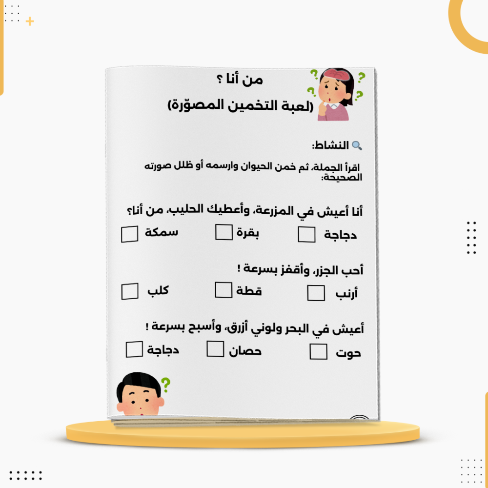 - فهم البيئة المحيطة: التعرف على المفاهيم الأساسية من واقعه اليومي (الحيوانات، النباتات، المهن) بطريقة مبسطة.
