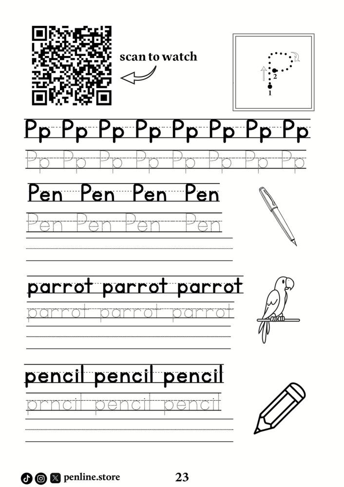 - فيديوهات QR: تحتوي الكراسة في كل صفحة على كود لمتابعة طريقة الكتابة الصحيحة.